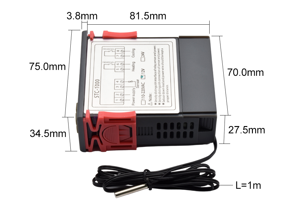 The STC-1000 is a high-quality thermostat, a small-sized temperature controller that can be used for automatic control of cooling and heating. It has a readable LED display and a waterproof temperature sensor with a 1 meter cable. The device can be used in refrigerators, ovens, pumps, swimming pools, smokehouses, anywhere you need to control the temperature.