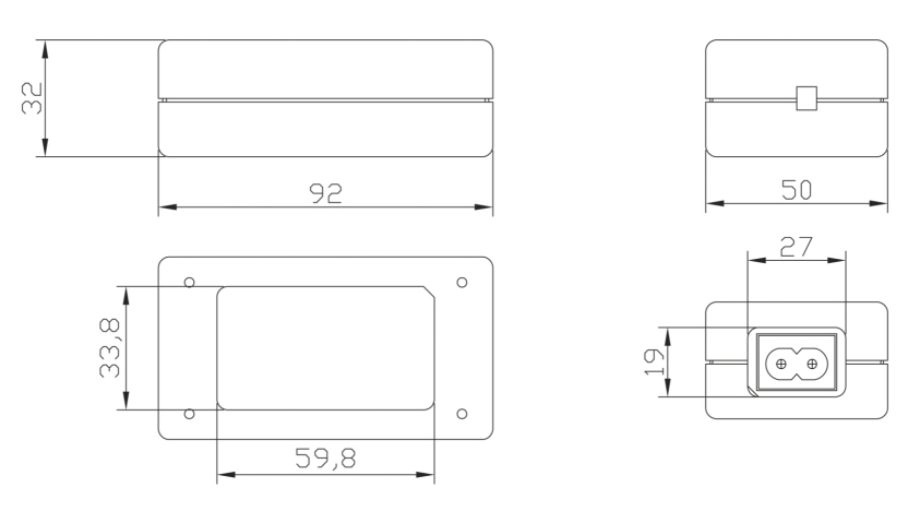 - Dimensions: 93 × 50 × 33 mm
