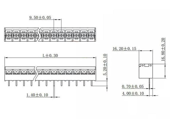 TERMINAL BLOCK HB9500-9.5-6P, 30A / 300V, 2pin 9.5mm