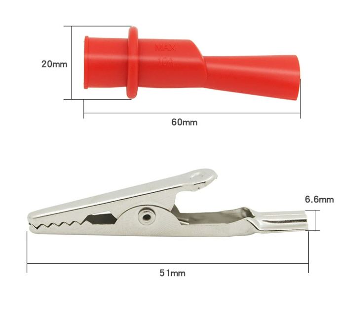 CROCODILE CLIPS insulated d=2mm 51mm, 10A, red