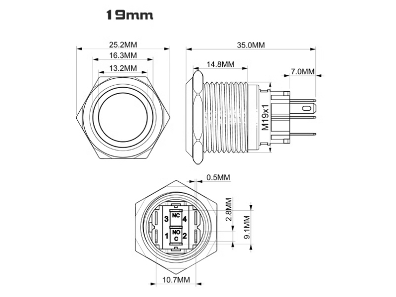 Type: SPDT 1NO1NC Fixed Switch with Illuminated Ring