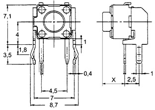 MICROSWITCH OFF-(ON) 50mA / 12VDC square, right-angled, L=3.8mm