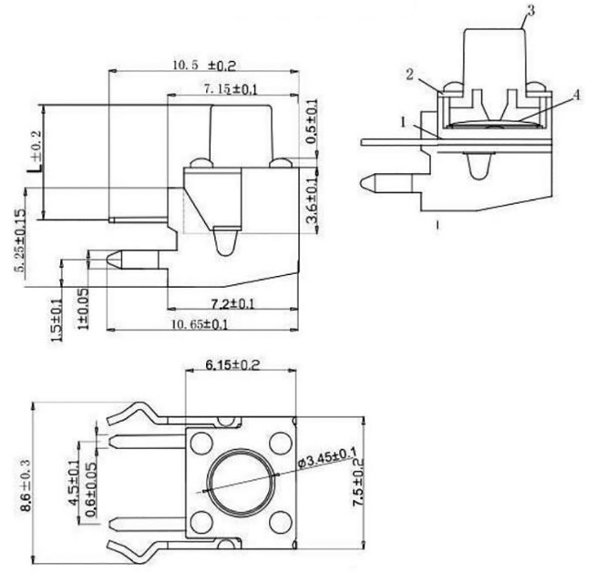 MICROSWITCH OFF-(ON) 50mA / 12VDC square L=9.5mm