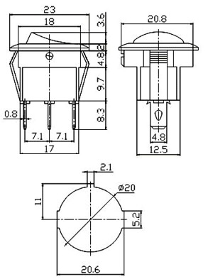 ROCKER SWITCH 12V DC 16A, green / D20mm, ON-OFF