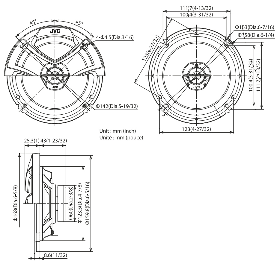 Car speakers, 4Om 300W, 35...22000Hz 92dB, 160mm, JVC CS-J620, set