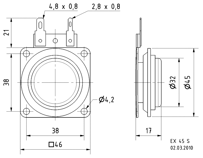 Connections: 4,8 x 0,8 mm (+) / 2,8 x 0,8 mm (-)