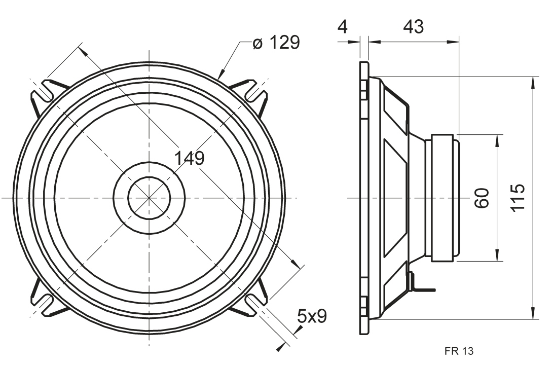 13 cm (5”) full-range loudspeaker with an inverted surround. Uniform frequency response and powerful low-frequency output. Simple installation e.g. in vehicles with loudspeaker mounts for 13 cm loudspeakers.