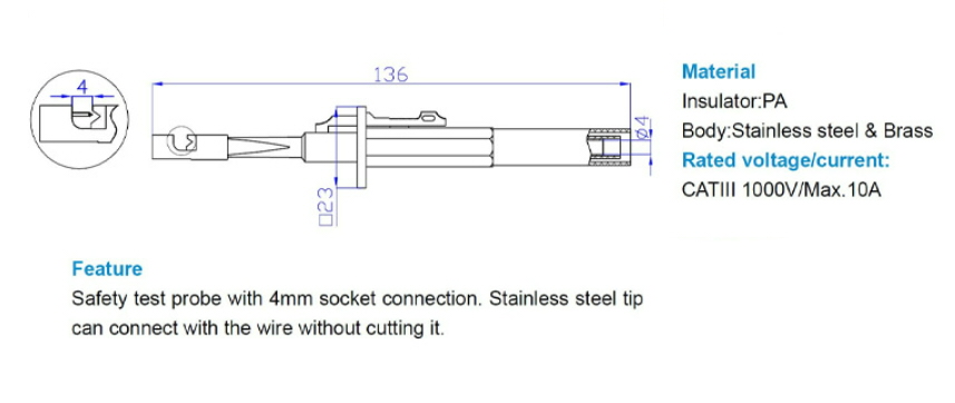 -release the button and test tools within the very fine probe can pierce the cable jacket direct and conductor, thus to cable signal for nondestructive testing.