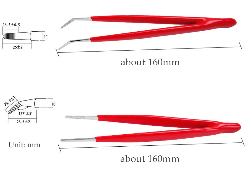 Insulated Stainless Steel Tweezer 160mm Elbow for Phone and Computer Motherboard IC Chip Soldering and Repair