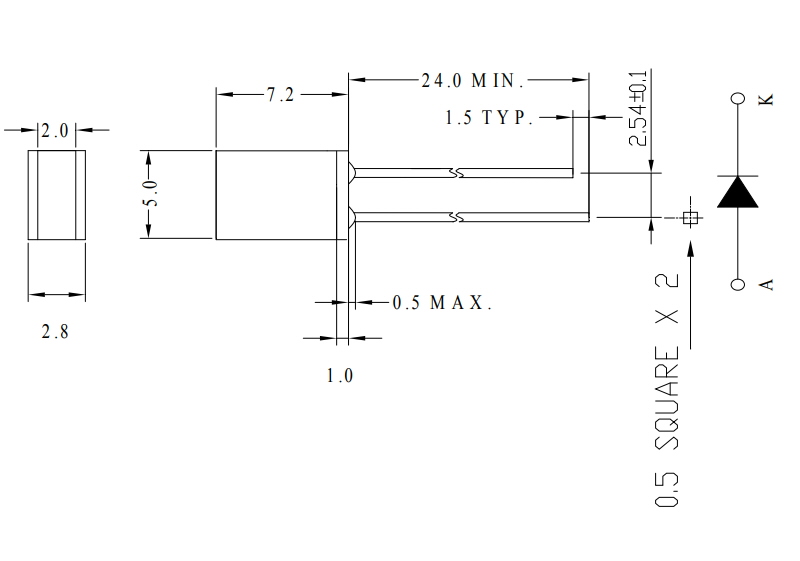 LED 2x5mm 15mcd 140° 30mA, yellow/green
