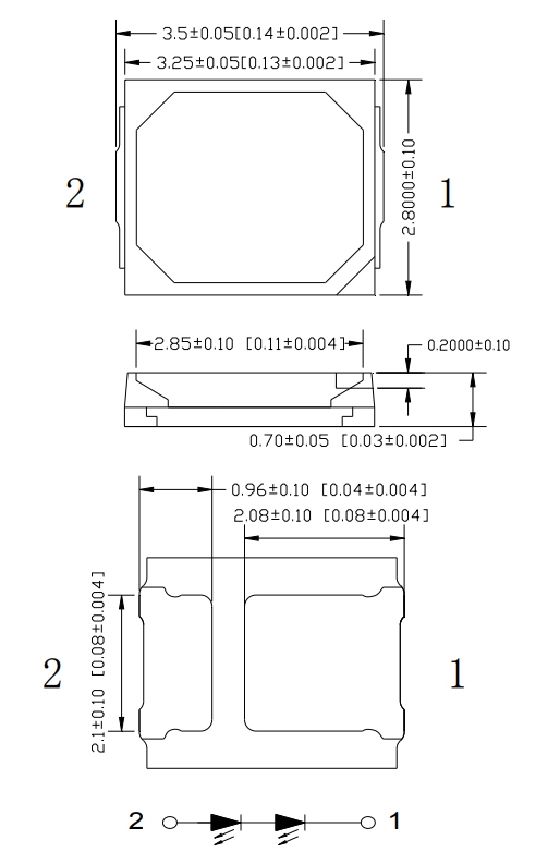 LED SMD 2835, 5700-6500K; 105÷115lm; 120°; 150mA, cold white