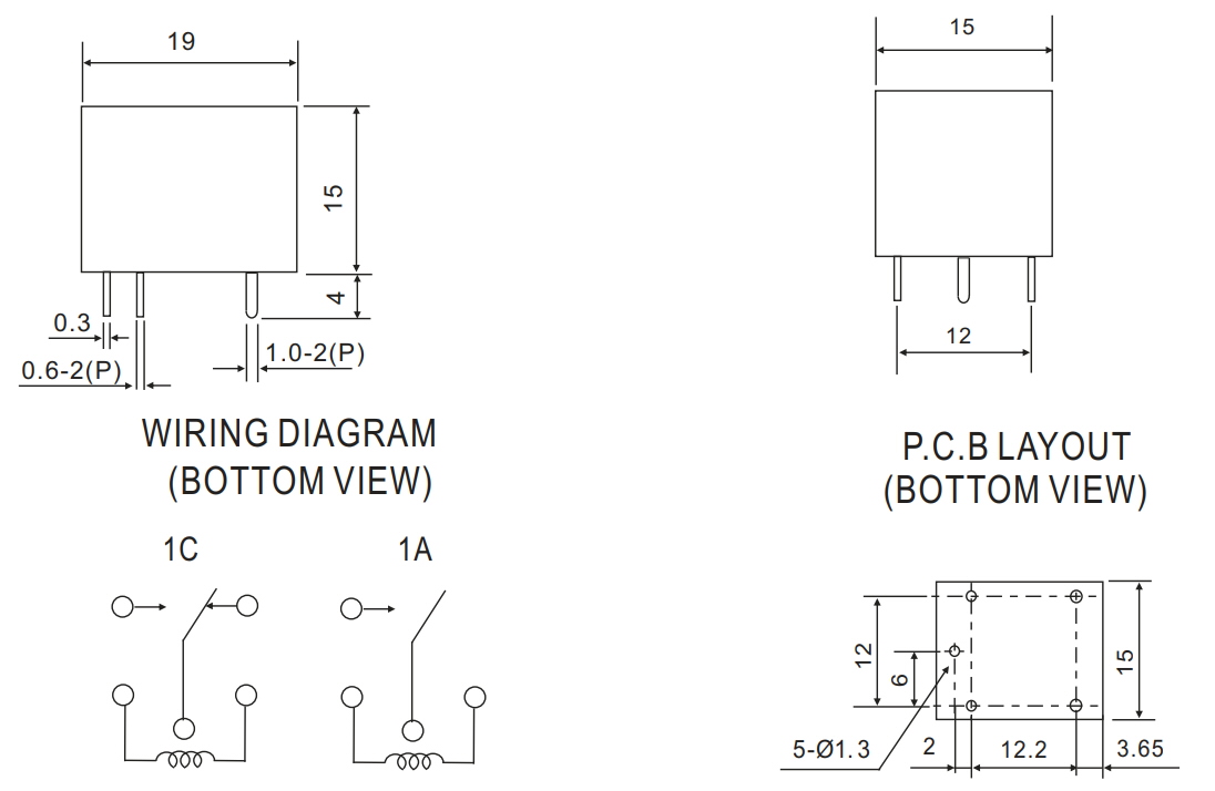- AC contacts rating @R (at resistance load) 0.5A / 125V AC