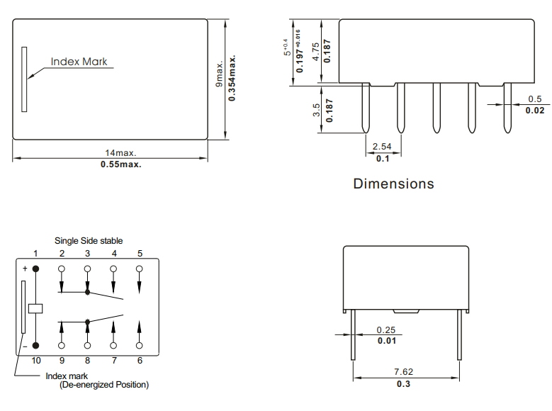 RELAY 5V 142mW, 1A/30V 0.5A/125VAC, (DPDT), DIP10