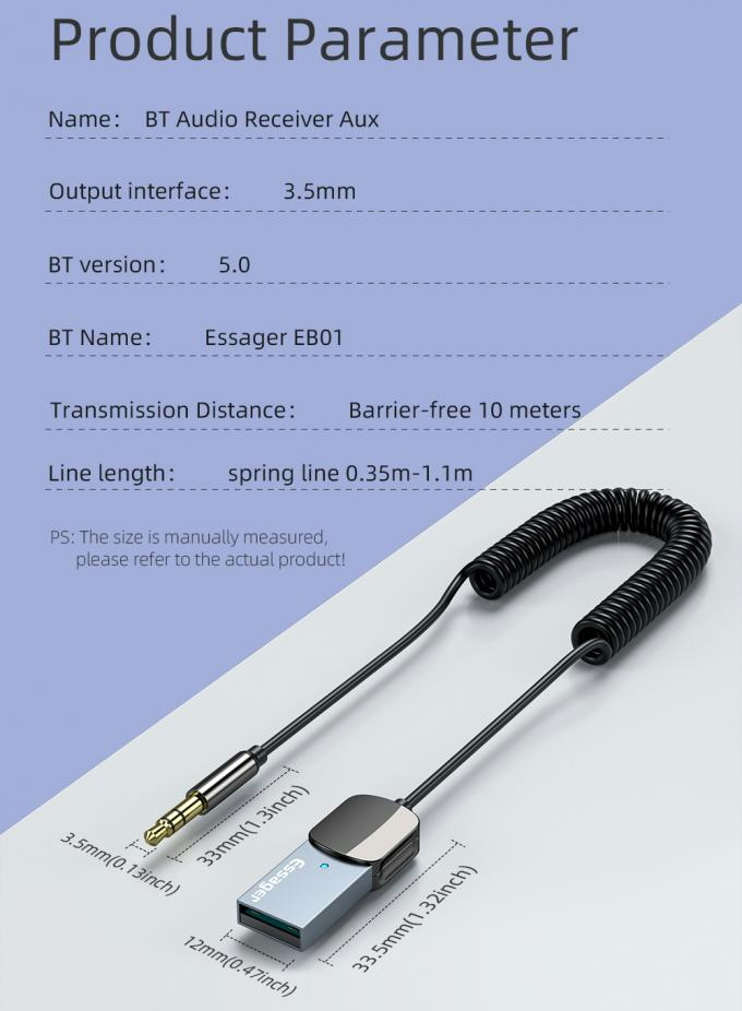 🔊 USB uz 3,5 mm spraudņa automašīnas audio uztvērējs — Bluetooth 5.0 raidītājs📦 Produkta aprakstsModerns Bluetooth 5.0 USB adapteris, kas paredzēts bezvadu audio pārraidei caur 3,5 mm AUX portu. Ideāli piemērots lietošanai automašīnā vai mājas audio sistēmā. Nodrošina augstas kvalitātes audio un atbalsta brīvroku funkciju.