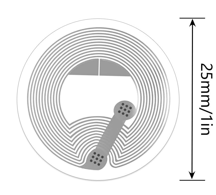 NFC līmlapa F08, ø25mm, 13,56 MHz, 1024 baiti – RFID