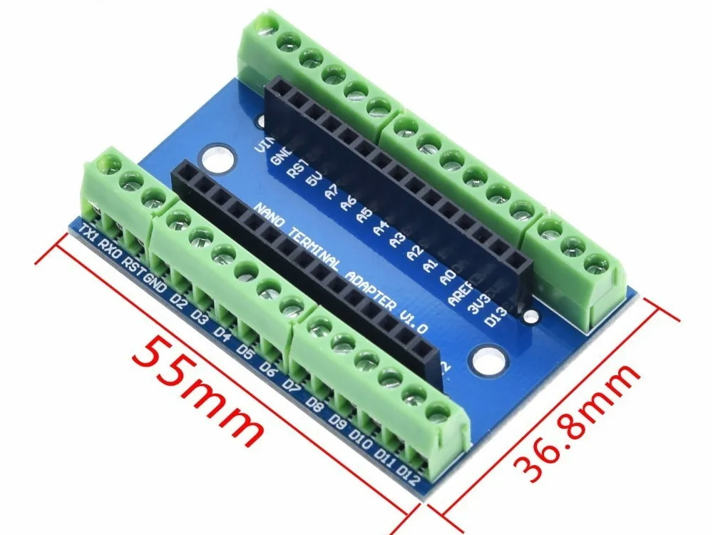 Šis produkts ir termināla paplašinājuma adapteris, kas ļoti labi darbojas Arduino Nano projektu