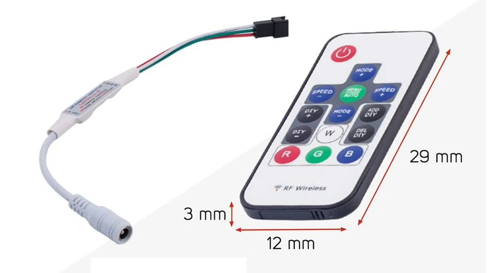 LED RGB RF kontrolieris digitālajai LED lentei ar WS2811, 14 taustiņi, 5-24V <70W, WS2812B