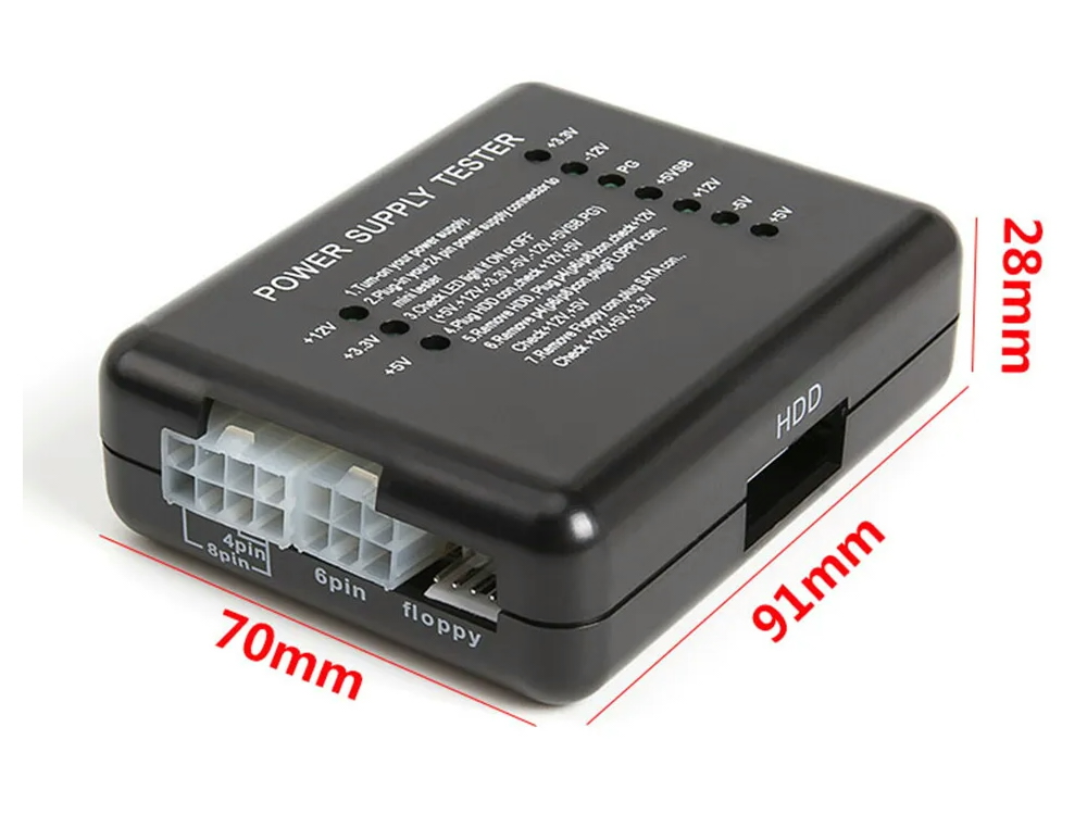 ⚡ ATX barošanas avota testētājsProdukta nosaukums: ATX barošanas bloka PSU testētājs ar 20/24 kontaktiem, SATA un Molex HDD savienotājiem datoram