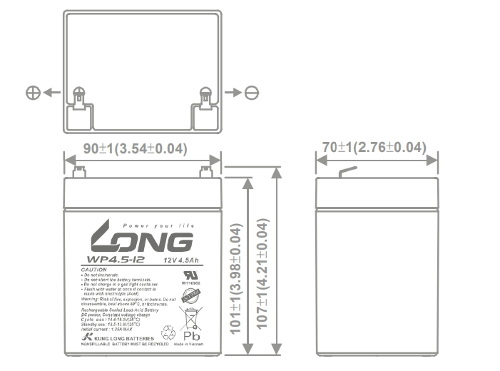 UZLĀDĒJAMA BATERIJA SLA 12V 4,5Ah 101x90x70mm