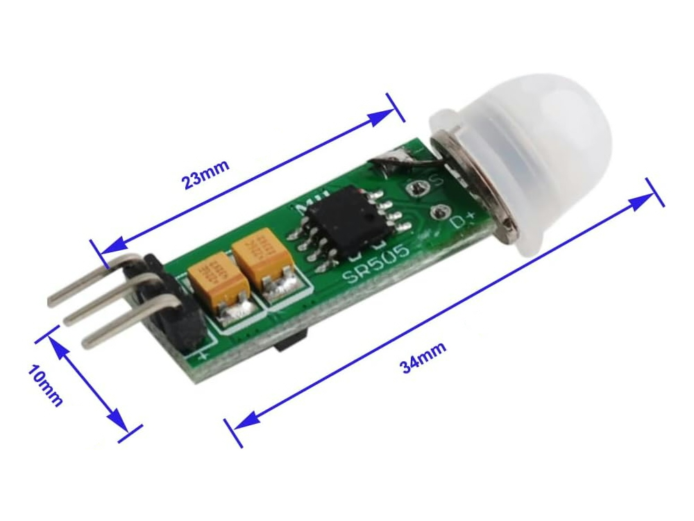 📦 HC-SR505 mini sensoru modulis Arduino – cilvēka ķermeņa sensoru modulisHC-SR505 ir ultrakompakts, mazjaudas pasīvais infrasarkanais (PIR) kustības sensors. Tas ir paredzēts cilvēku kustību noteikšanai un ir ideāli piemērots projektiem, kuros tiek izmantoti mikrokontrolleri, piemēram, Arduino. Tas ir ideāli piemērots apgaismojuma automatizācijai, signalizācijas sistēmām un interaktīvām instalācijām.