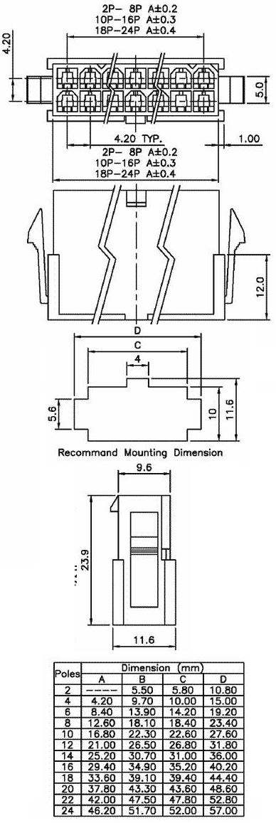 2-kontaktu vīriešu savienotājs 4,2 mm kabeļiem