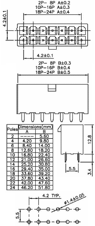 SASLĒGVIENOJUMS 6pin vīriešu 4,2 mm