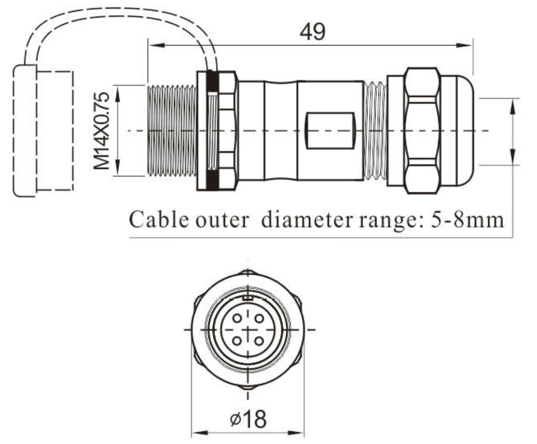 Kabeļa ārējais diametrs: 5...8 mm