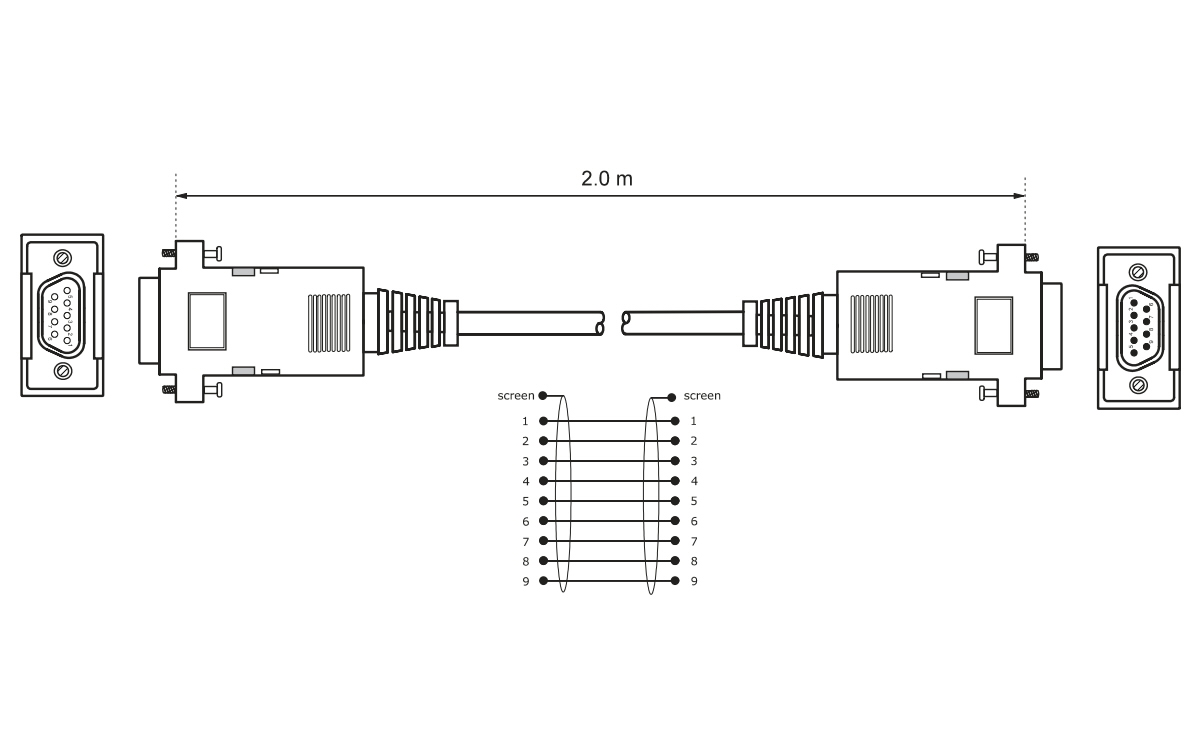 D-SUB/RS-232 vīriešu (9-pin) > D-SUB/RS-232 sieviešu (9-pin)