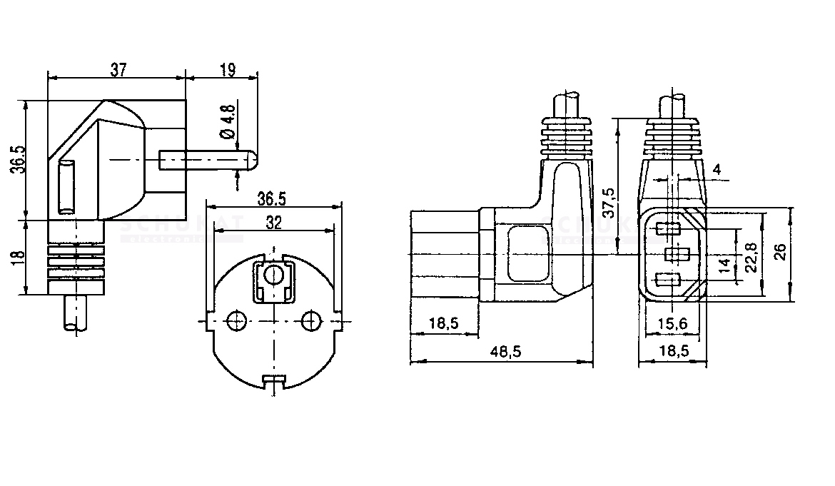 Maiņstrāvas kabelis 250 V, 10 A, 3 x 0,75 mm², 3-kontaktu CE, 1,8 m, leņķveida vīriešu savienotājs