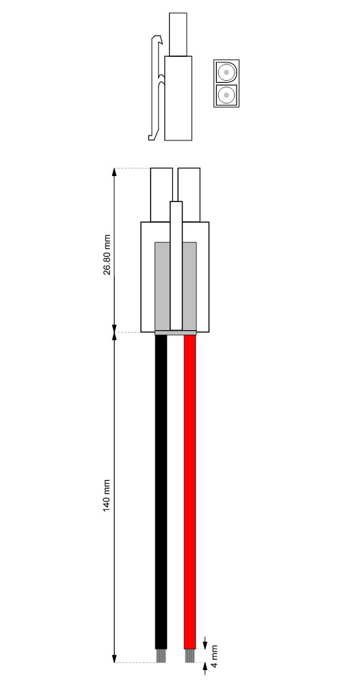 Kabelis ar lodētiem vadu galiem un Tamiya ligzdu Akumulatora savienojuma kabelis 0,14 m garš Tamiya savienotāja kabeļa apvalks ir izgatavots no PVC AWG 20