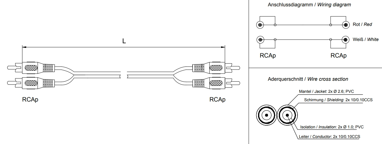 RCA kabelis pārraida audio signālus stereo formātā. Standartizēti, precīzi pielāgoti RCA spraudņi, izgatavoti no izturīga metāla. Audio kabelis savieno ierīces ar RCA savienojumu, nodrošinot pirmklasīgu skaņas kvalitāti. RCA spraudņi ir universāli, tos var izmantot, piemēram, mājas kino sistēmām, skaļruņiem, pastiprinātājiem, hi-fi sistēmām un DJ mikserpultīm. Krāsu kodēti RCA spraudņi ļauj viegli savienot kreiso un labo kanālu. Izturīgs, elastīgs PVC savienojuma kabelis.