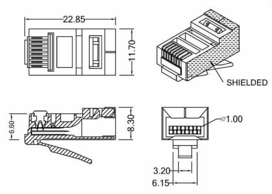PLUG RJ45 8P8C CAT6, ekranēts, cietam/elastīgam apaļam kabelim