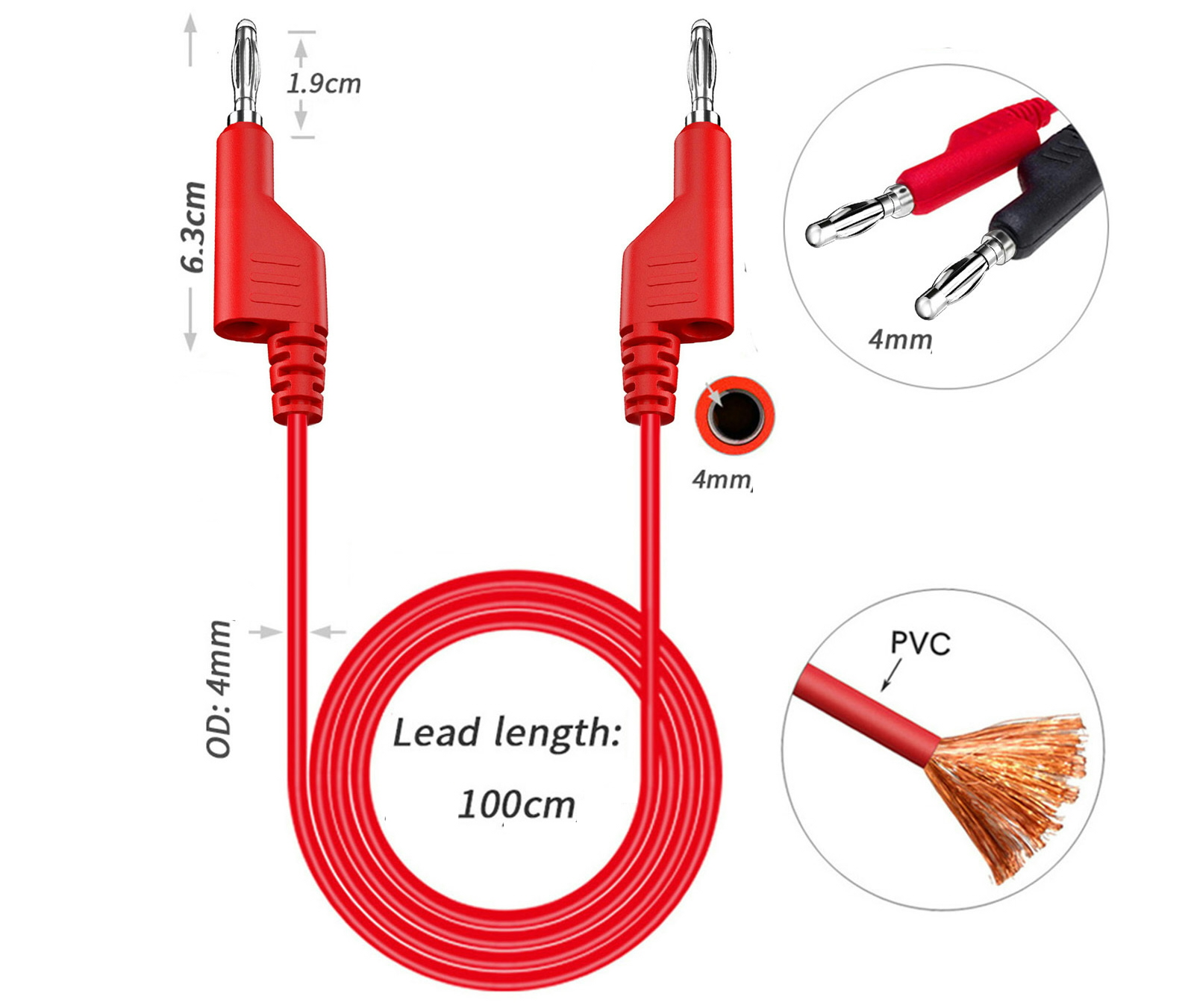 1 m garš mērīšanas vads ar 4 mm savienojuma banānu spraudņiem, kas paredzēts elektriskās ķēdes testēšanai. Vads ir aprīkots ar izolētiem plastmasas uzgaļiem, lai nodrošinātu operatora elektrodrošību un ātru savienojumu ar testēšanas punktiem, padarot to īpaši piemērotu precīziem mērījumiem ar digitālajiem multimetriem un citiem testēšanas instrumentiem.