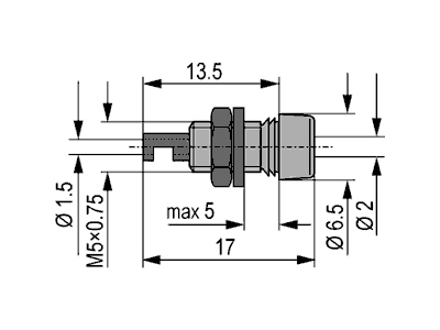 SOCKET ø2mm 17mm 'banāna' tips, melns 60VDC 10A