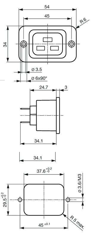 SOCKET AC 16A IEC 60320 C19, paneļa montāža