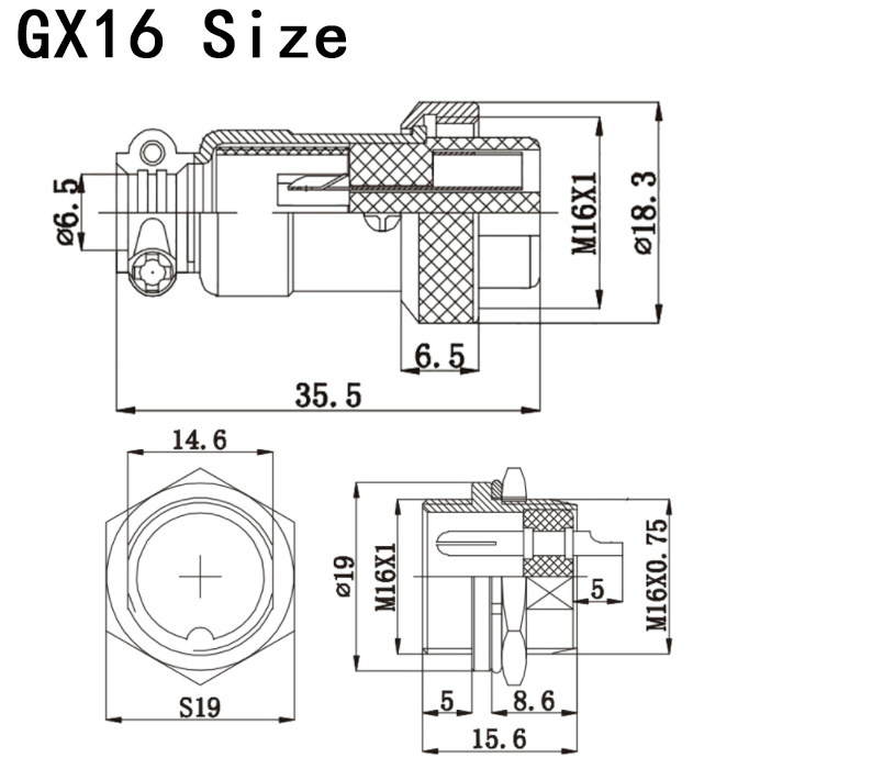 SASLĒGVIENOJUMS CB, GX16 16 mm, 10 kontakti