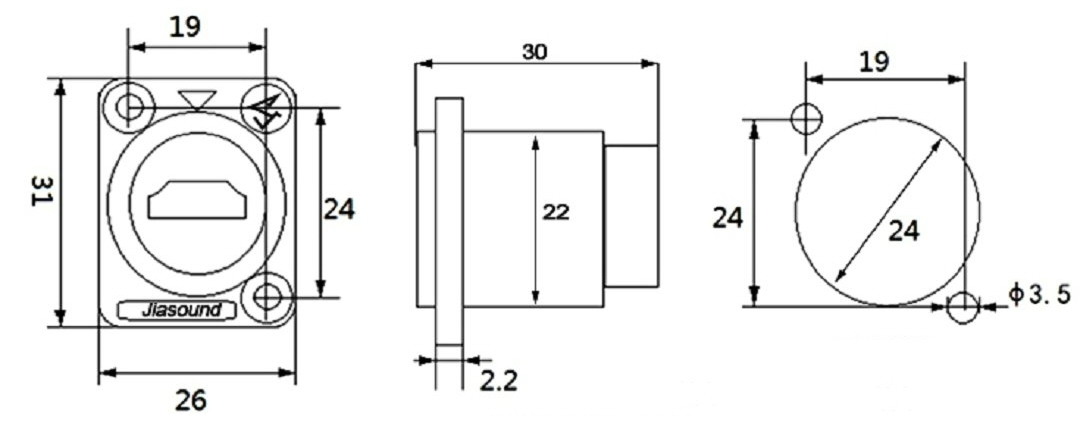 31 x 26 mm D tipa HDMI ligzda paneļa montāžai