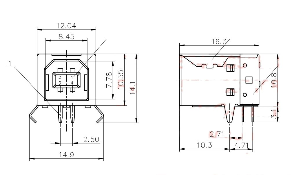 USB B tipa ligzda
