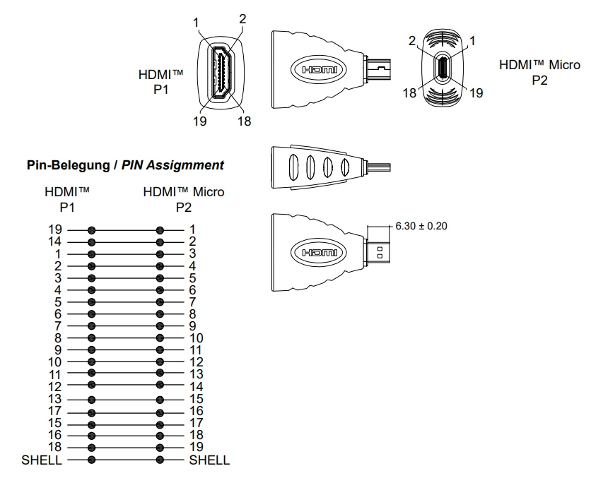 HDMI - HDMI Micro adapteris palīdz tieši savienot tādus ierīces kā PC, klēpjdatoru, spēļu konsoli, DVD atskaņotāju, GoPro darbības kameru, Raspberry Pi un televizoru