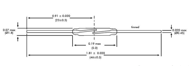 REED SWITCH 0,35 A 140 VAC, 5 W, ø1,8 x 5 mm