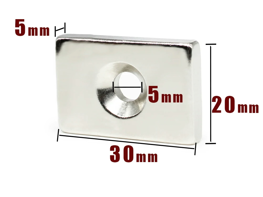 MAGNET Neodīma NdFeB, 30x20x5mm, ar 5mm caurumu