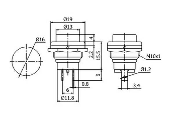 PUSH BUTTON SWITCH ON-(OFF) 4A 125VAC, 2A 250VAC, zaļš