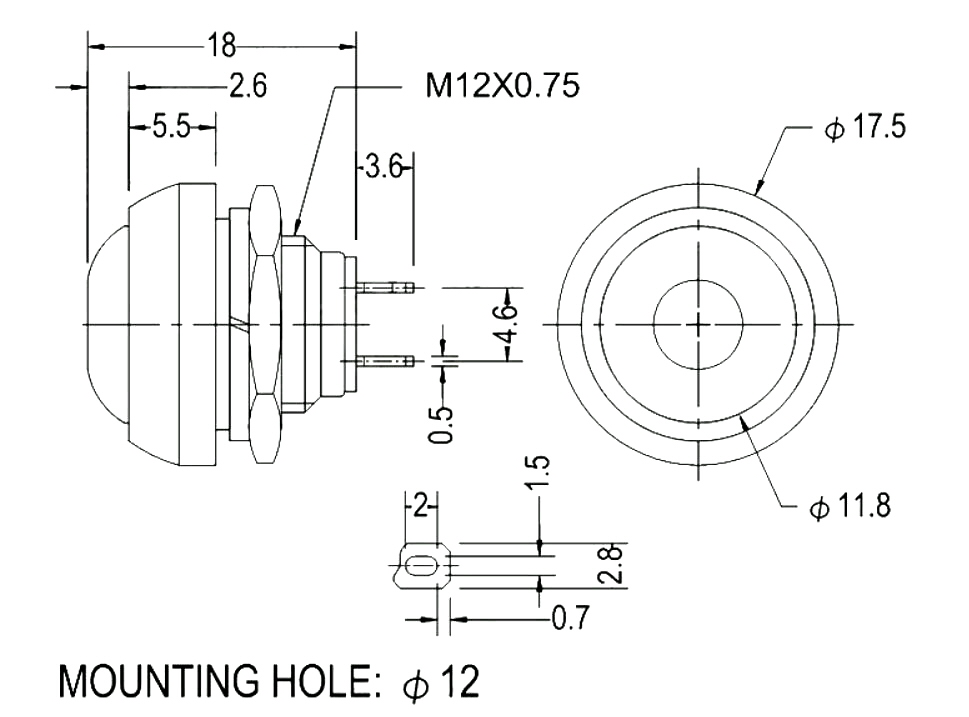 - Vienpolu momentālais slēdzis ar SPST-NO kontaktu