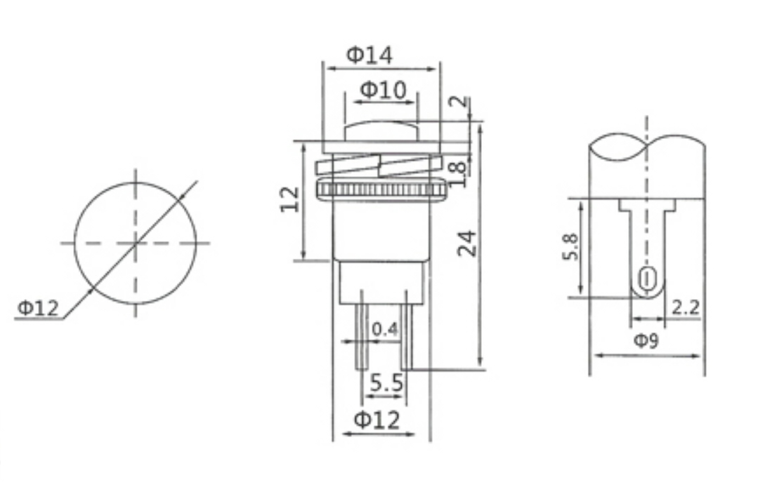 PUSH BUTTON SWITCH ON-(OFF) 1A / 250VAC, ø14mm, M12, zils