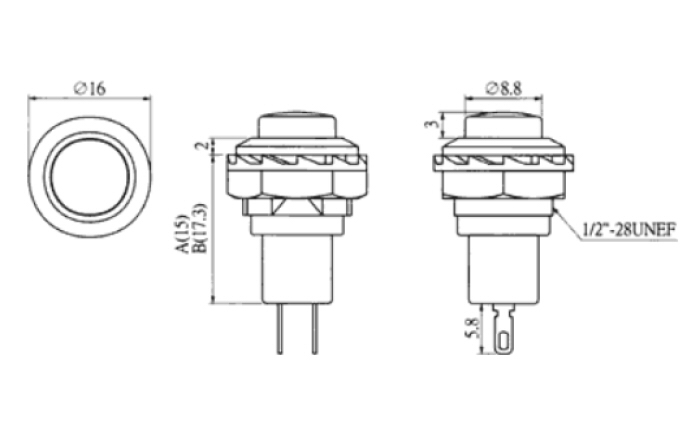 SPOGUĻU POGA IZSLĒGŠANA-(IESLĒGŠANA), 1,5 A 250 VAC, 3 A 125 VAC, D = 12,7 mm, melna plastmasa