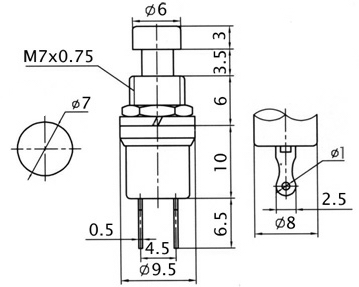 PUSH BUTTON SWITCH OFF-(ON), 3A 125VAC, melns