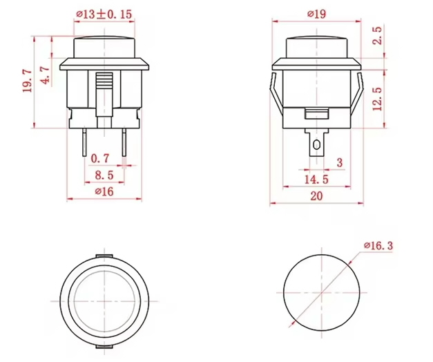 PUSH BUTTON SWITCH ON-(OFF) 3A/250V sarkans