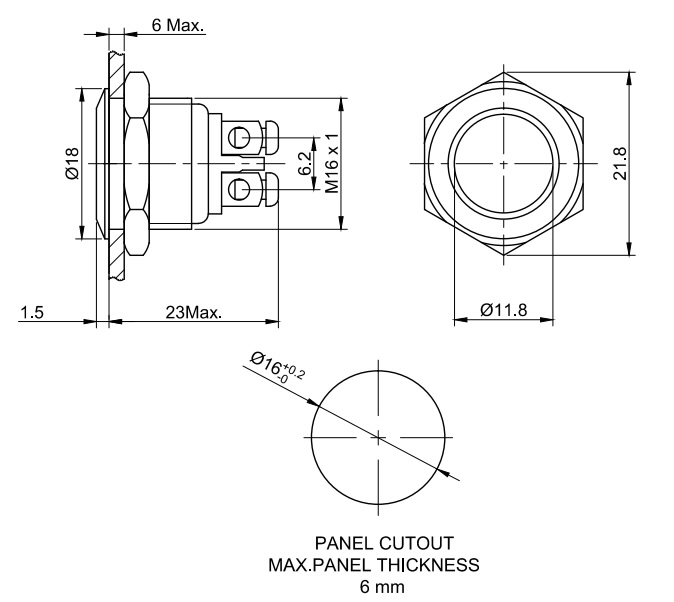 Montāžas cauruma diametrs: Ø16mm