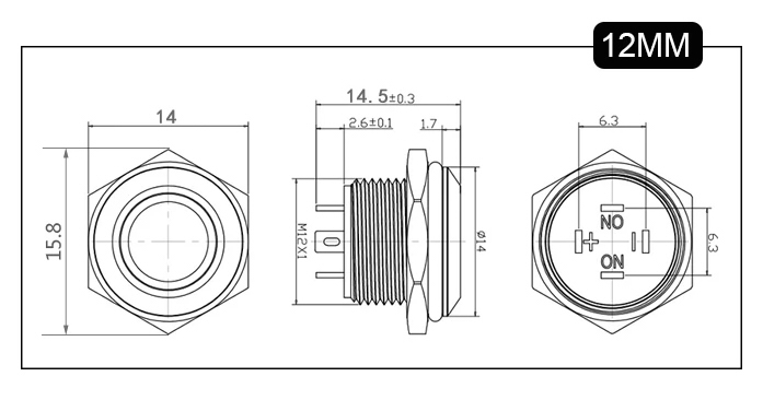 PUSH BUTTON SWITCH OFF-(ON) 12-24V DC, 5A, ø12mm, IP67, ar zaļu LED indikāciju