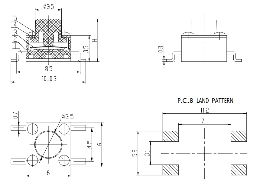 mm Poga augstums no PCB: 4
